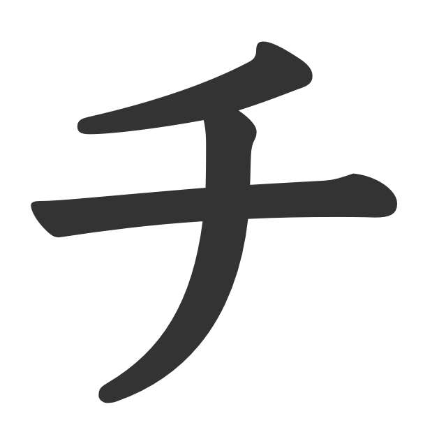 「チ・千」の1番上の線は、ななめの曲線で、上から左下にはらいます。「はらい」を筆で書くと、先が細くなります。