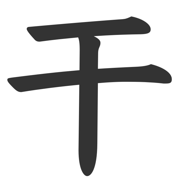 「干」の1番上の線は、よこの直線で、左から右にまっすぐ止めます。「とめ」を筆で書くと、ずっと同じ太さで、最後に少しだけ止めた印が出ます。