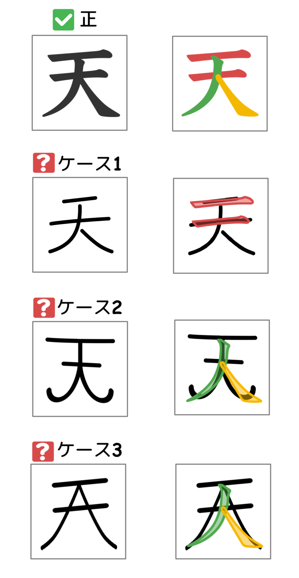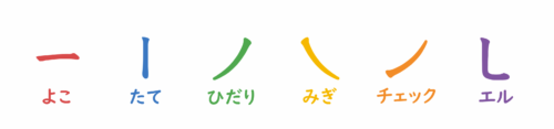เรียนรู้เส้นทั้ง6ประเภทของตัวอักษรคาตาคานะและคันจิ โดยการจำซื่อของเส้น เช่น “เส้นแนวตั้ง”“แนวนอน”และการเคลื่อนไหวร่างกาย